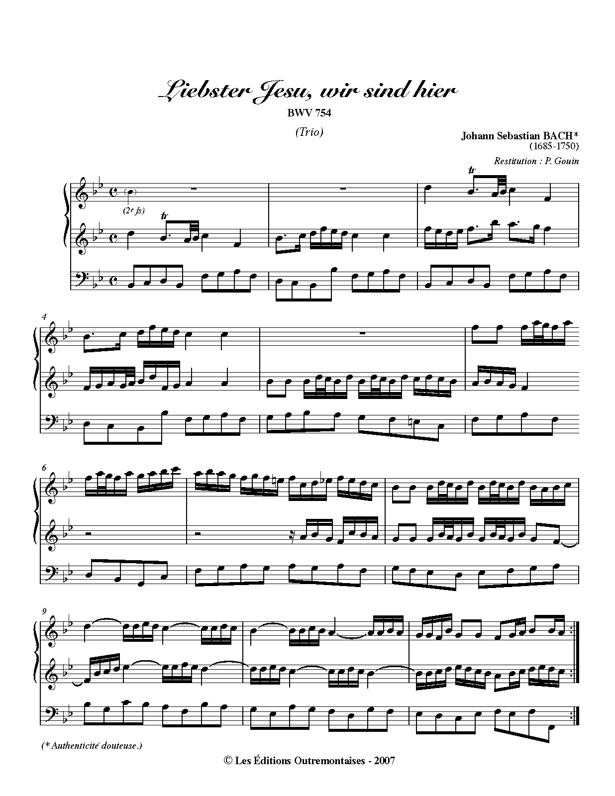 Alternative. Title Liebster Jesu, wir sind hier (à 2 Clav. et Ped.)