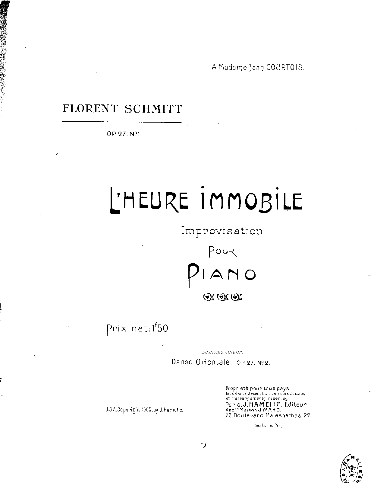 Publisher. Info. Paris: J. Hamelle, 1909. Plate J. 5277 H.