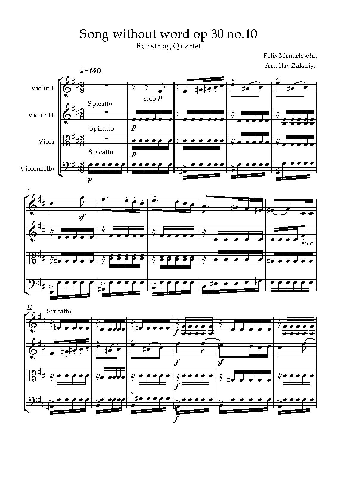 For 2 Violins, Viola and Cello (Zakariya)