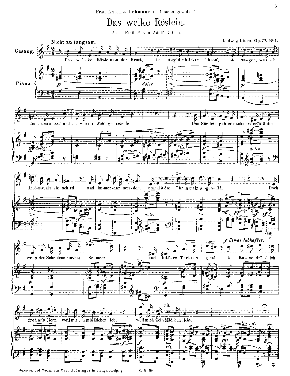 | Dedication | 1. Frau Amelia Lehmann in London gewidmet |