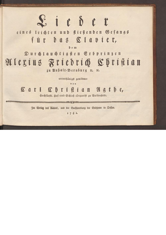 | Dedication | Alexius Friedrich Christian zu Anhalt-Bernburg |