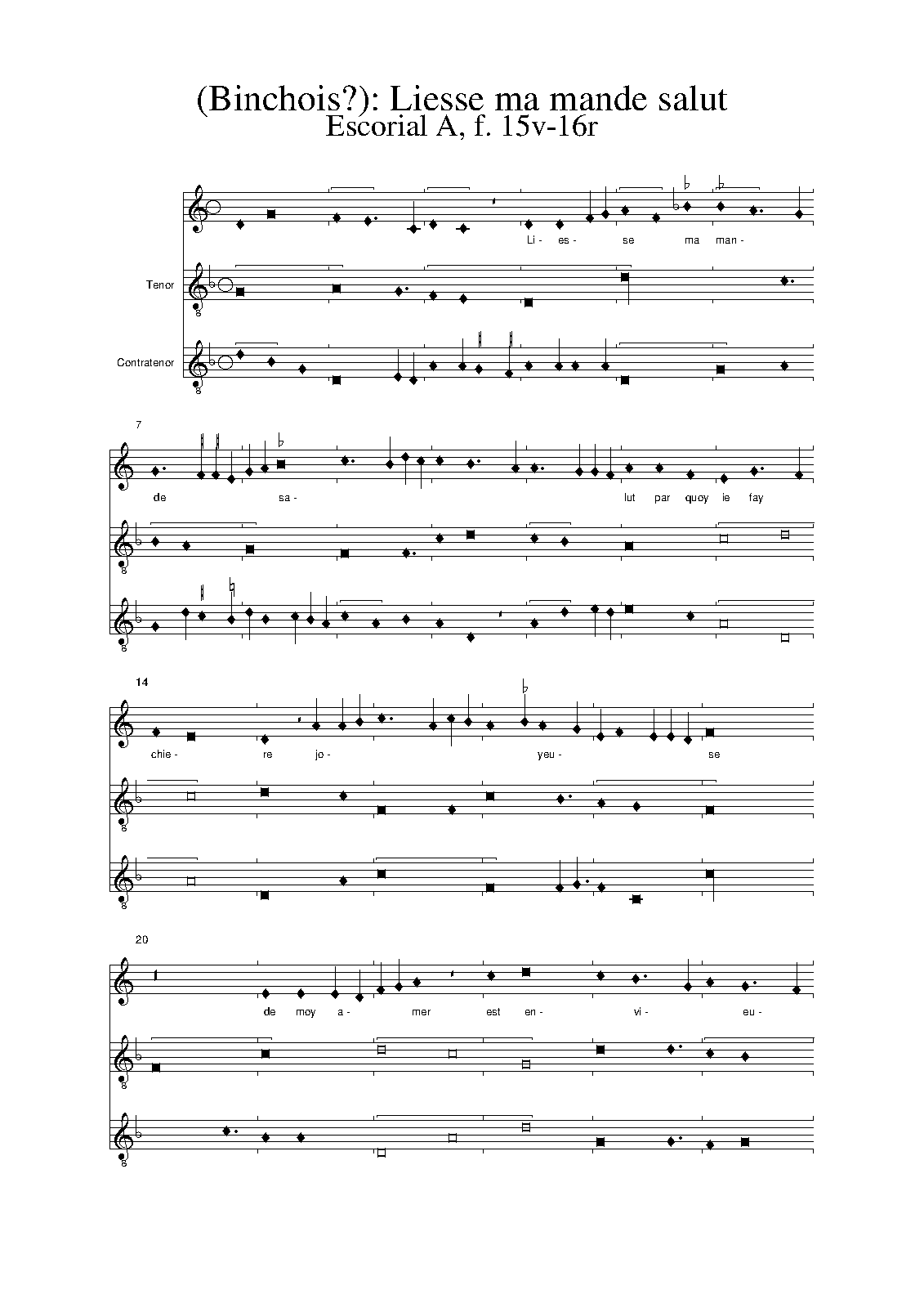 Binchois's authorship of this work is doubtful. In some sources, it is attributed to Guillaume Dufay (1397-1474) or Estienne Grossin (fl. 1418-1421).