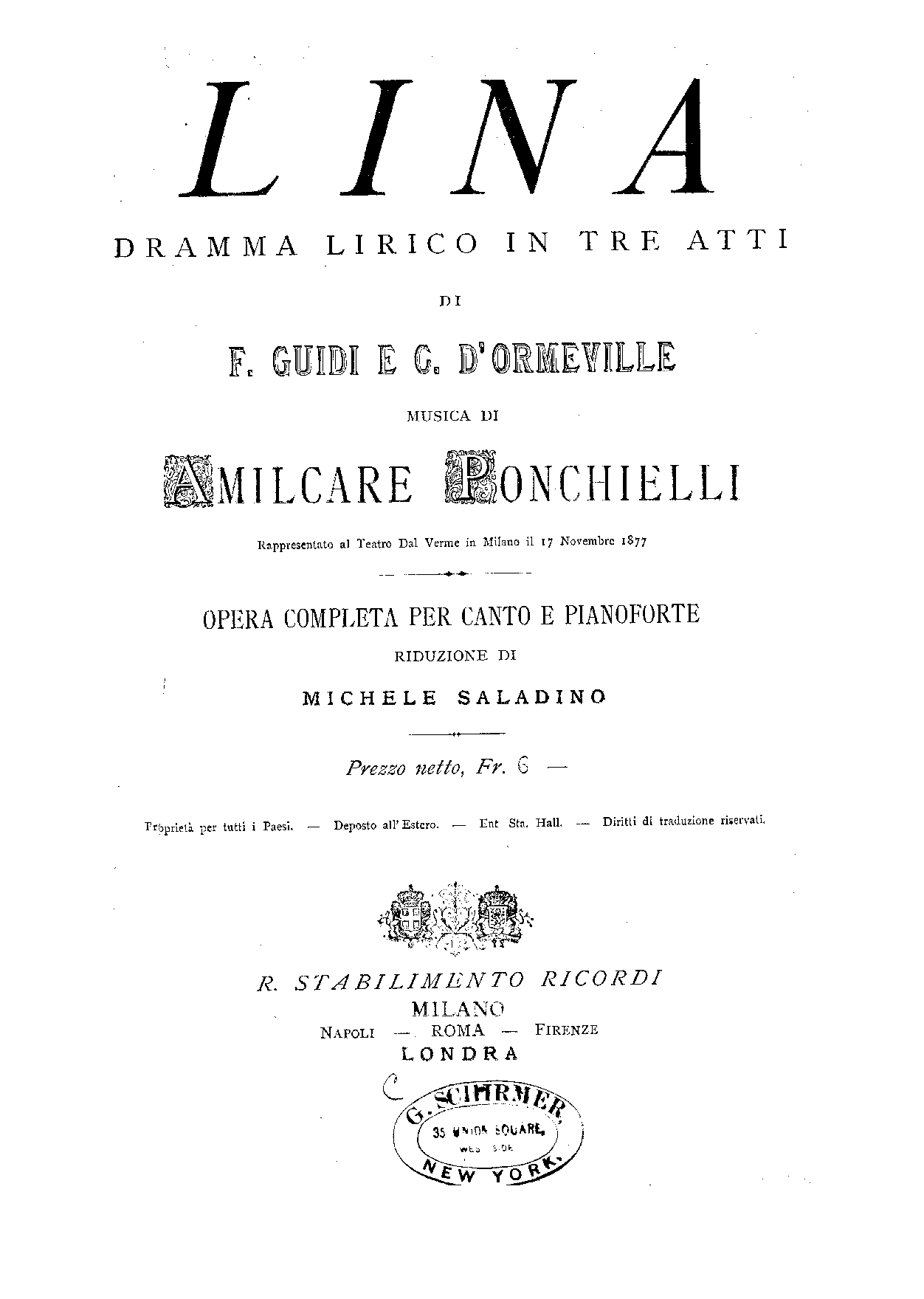 | Extra Information | Revision of the earlier opera La Savoiarda (1861). |