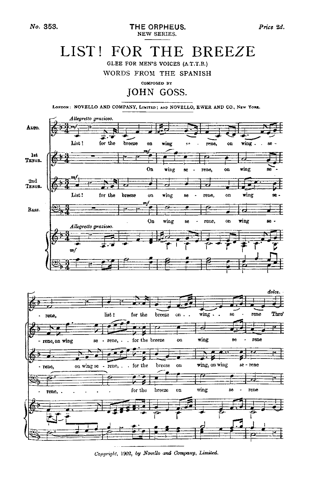 The Orpheus (New Series), No.353. London: Novello & Co., 1902.