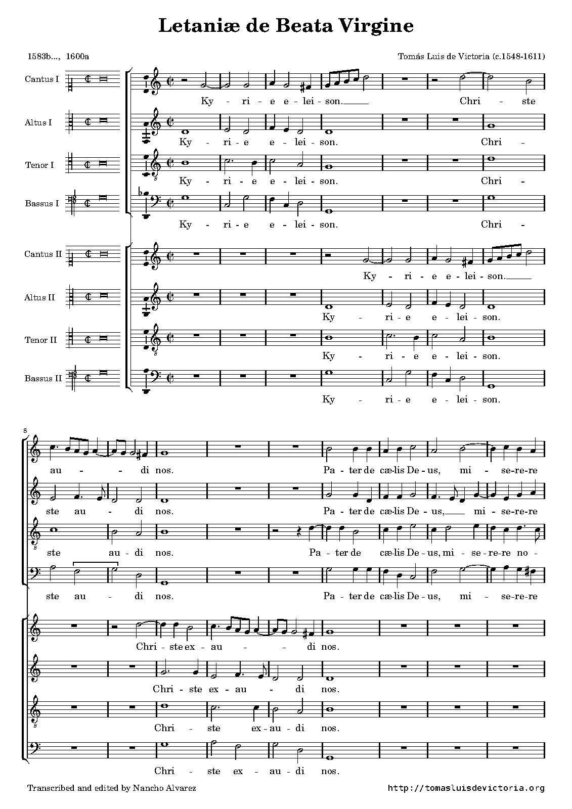 Includes organ transcription of Victoria’s ad libitum continuo (doubling choir 1).