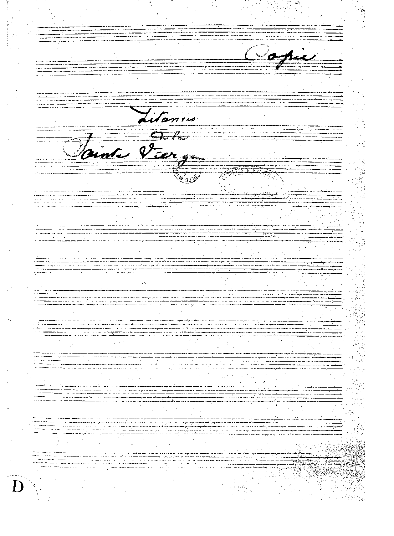 | Genre Categories | Litanies; Religious works; For 4 voices, mixed chorus, orchestra; |