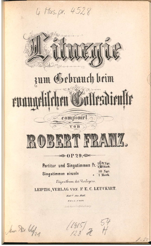 | Work Title | Liturgie zum Gebrauch beim evangelischen Gottesdienste, Op. 29 |