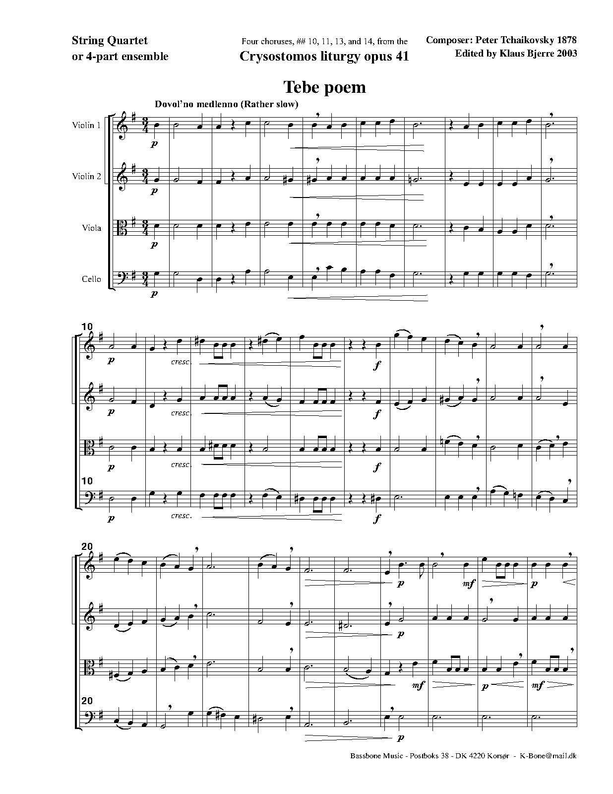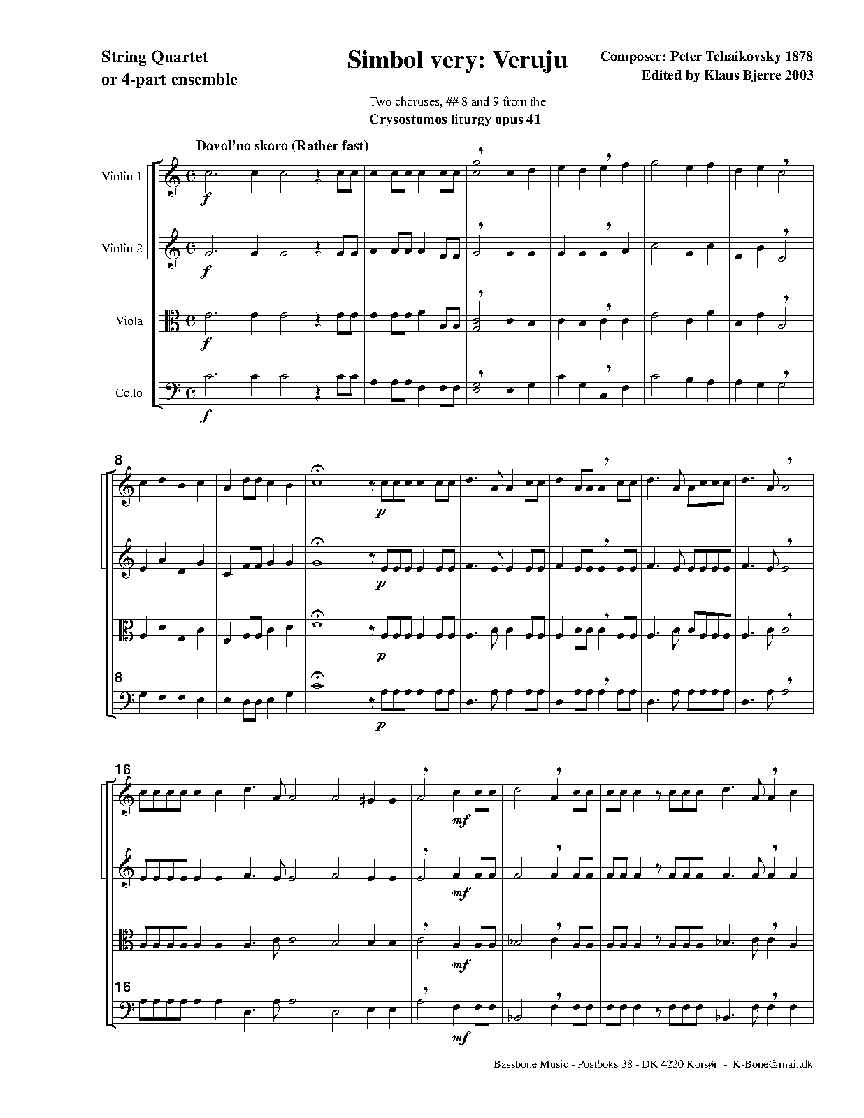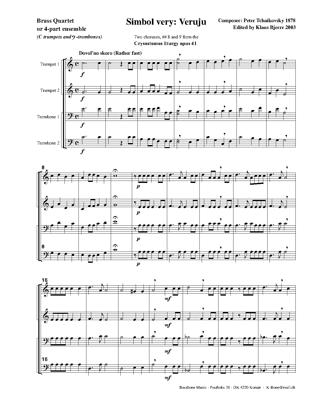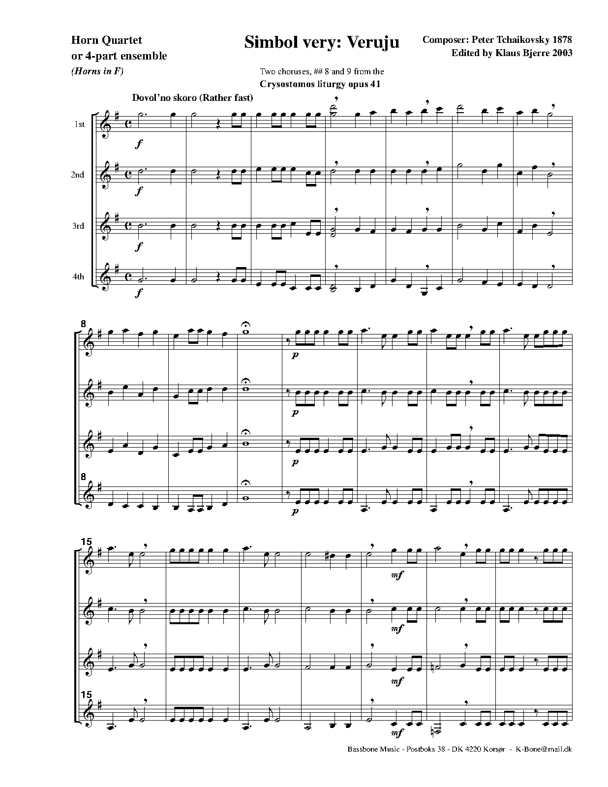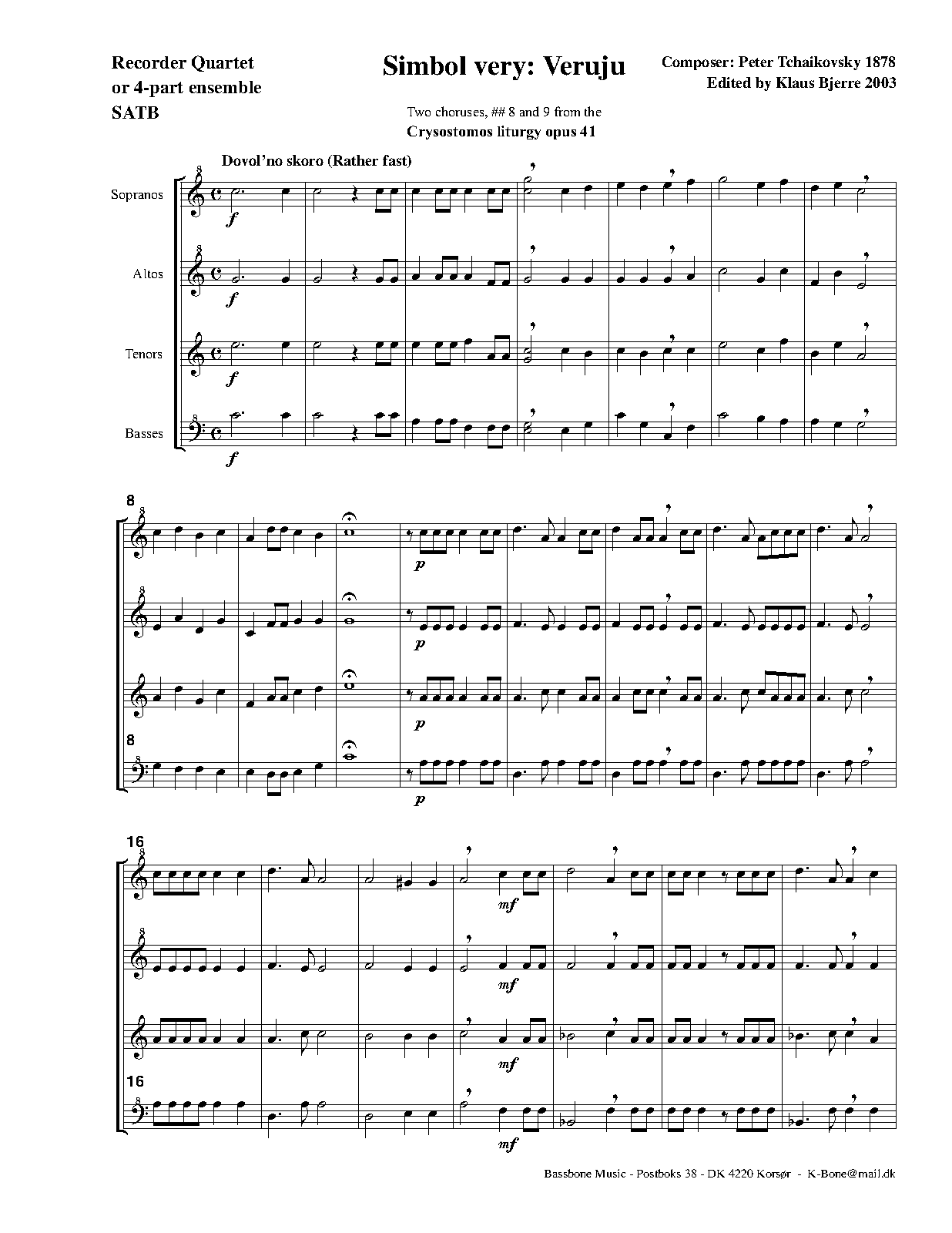- Glory to the Father, and to the Son, and to the Holy Spirit (Слава Отцу и Сыну и Святому Духу) (C major, 63 bars)