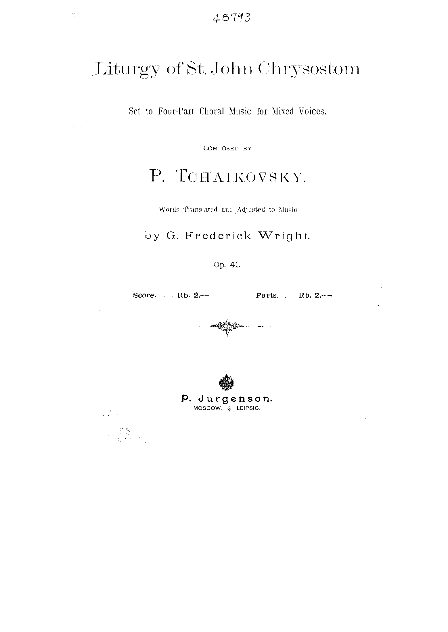 - Cherubic Hymn (Херувимская песнь) (E minor–B major, 98 bars)