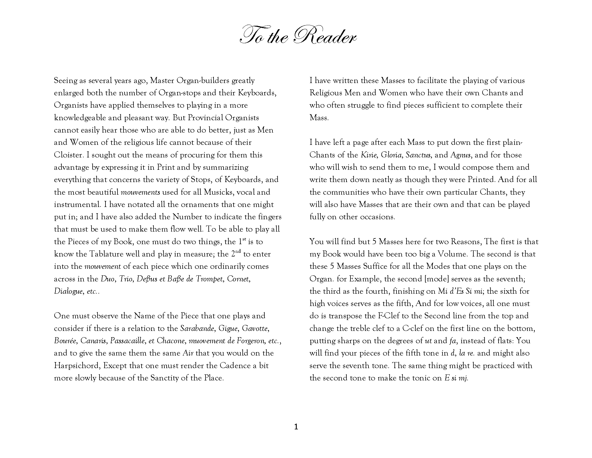 ⇒ 7 more: Second Sanctus - Trio de Cromorne et de Cornet séparé ou d’Éco • Benedictus - Trio à trois claviers ou à deux à l’ordinaire (2 versions) • Élévation en a mi la beccarre • Agnus Dei (Dialogue) • Second Agnus (Basse de Trompette ou de Tierce) • Autre Second Agnus - Dialogue • Deo gratias