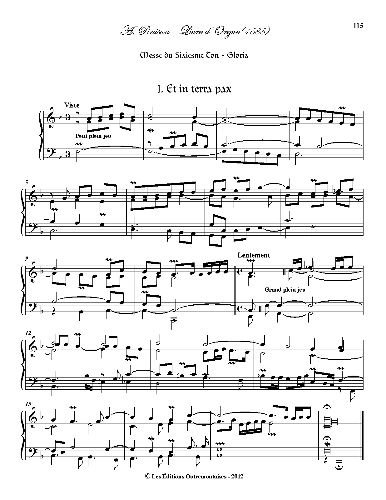 ⇒ 6 more: Second Sanctus - Récit de 2 dessus de tierce • Benedictus (Voix humaine) • Élévation - Trio à 3 claviers • Agnus Dei (Plein jeu, dialogue) • Second Agnus - Duo • Deo gratias - Plein jeu