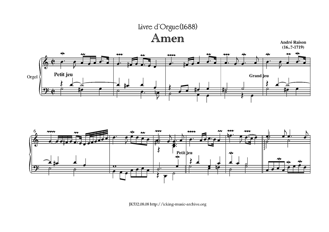| Extra Information | A second Livre d'orgue, containing "La Paix tant désirée" and 18 noëls among other pieces, was published in 1714. |