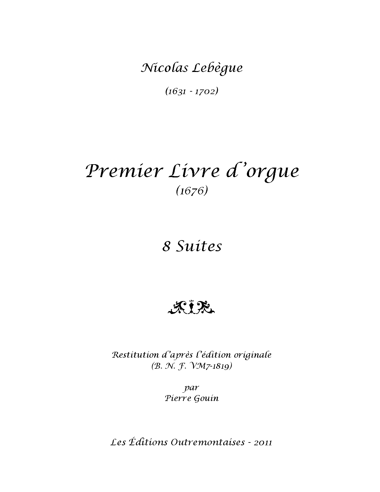 Les Pièces d’orgues composées par N. le Begue Organiste de St. Mederic avec les varietez, les agréements, et la manière de toucher l’Orgue à présent sur tous les Jeux, et particulièrement ceux qui sont peu en usage dans les provinces comme la Tierce et Cromorne en Taille : les Trios a deux dessus, et autres a trois Claviers avec les Pedalles : les Dialogues, et les Recits.</span>