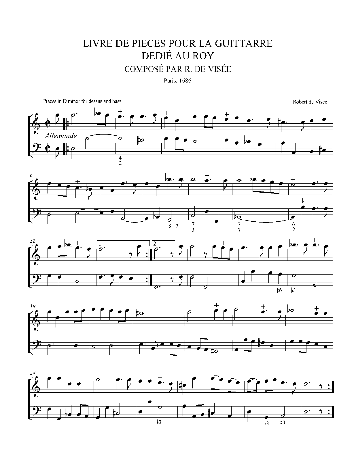 Instrumentation baroque guitar ; (some pieces in keyboard score, e.g. for harpsichord, or flute/violin/oboe and continuo)