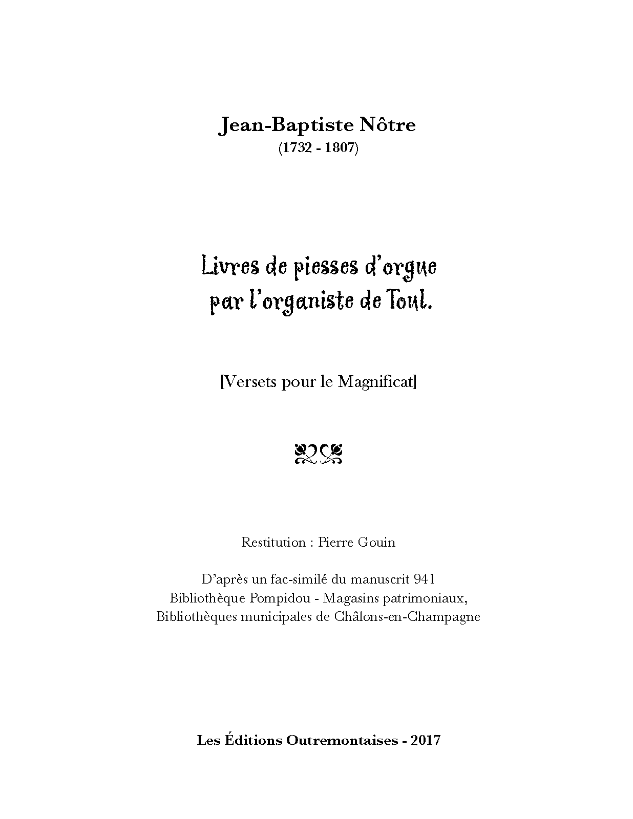 | Work Title | Livres de piesses d’orgue par l’organiste de Toul |