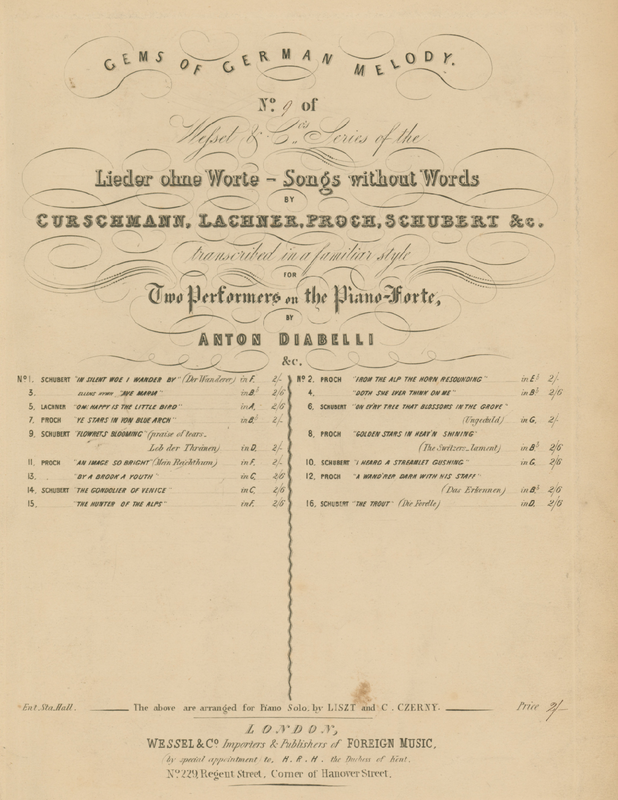 Publisher. Info. Ausgewählte Lieder von Franz Schubert für Pianoforte solo arrangirt