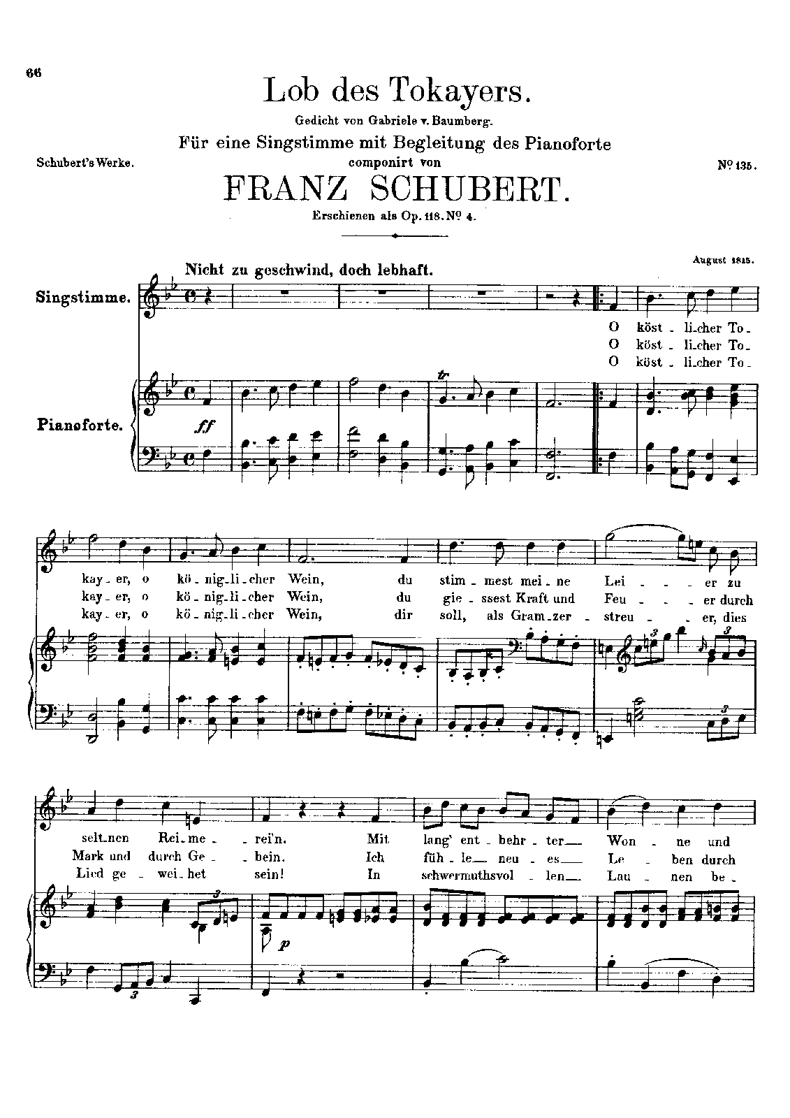 Publisher. Info. Schubert's Werke, Serie XX, Band 3. Aug. bis Ende 1815, No.135 (pp.66-67)