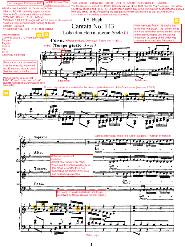 Opus/Catalogue NumberOp./Cat. No. BWV 143 ; BC T 99