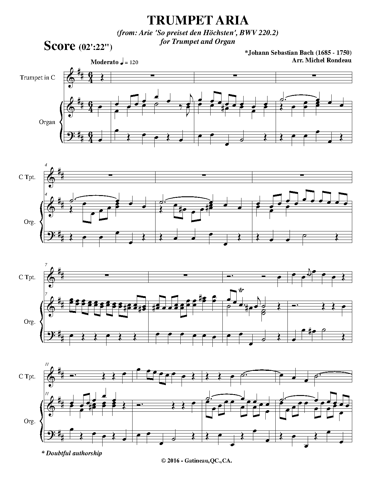 Opus/Catalogue NumberOp./Cat. No. BWV 220 ; BC V 10 ; BWV Anh.II 023