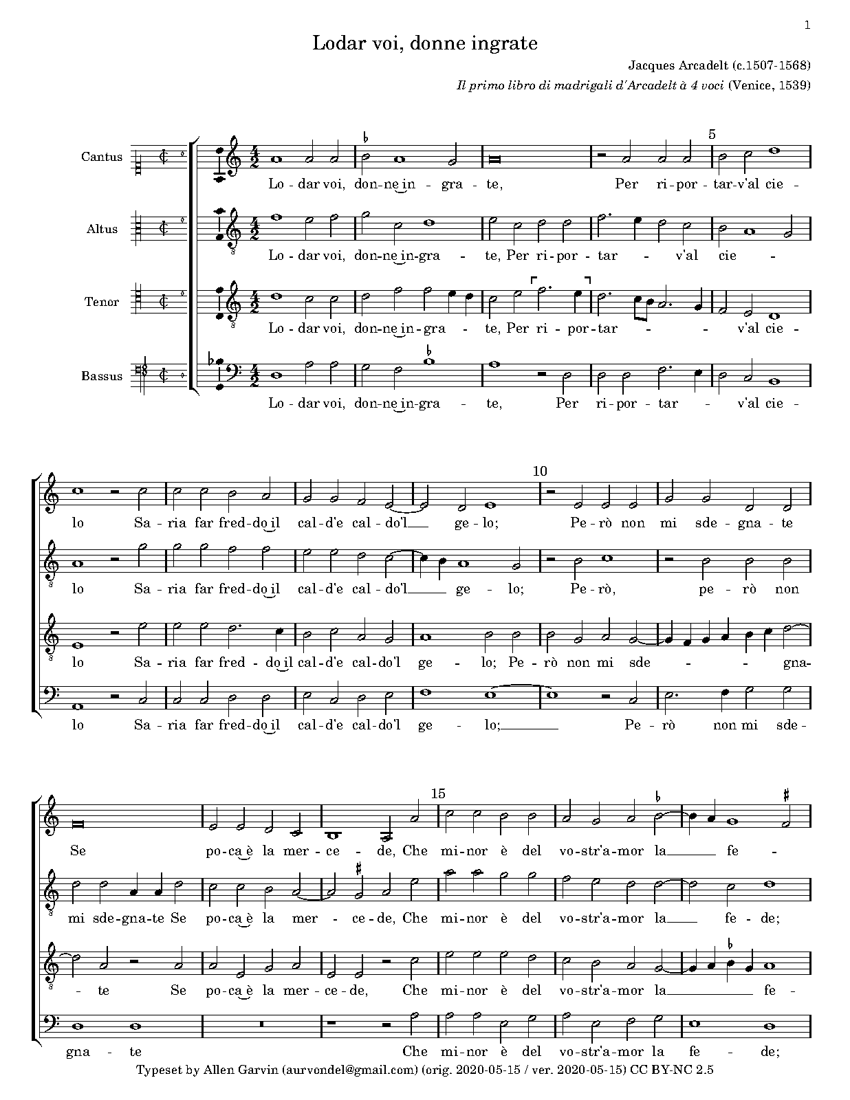 | First Publication | 1539 in Madrigali a 4 voci, Libro 1 (No.23) |