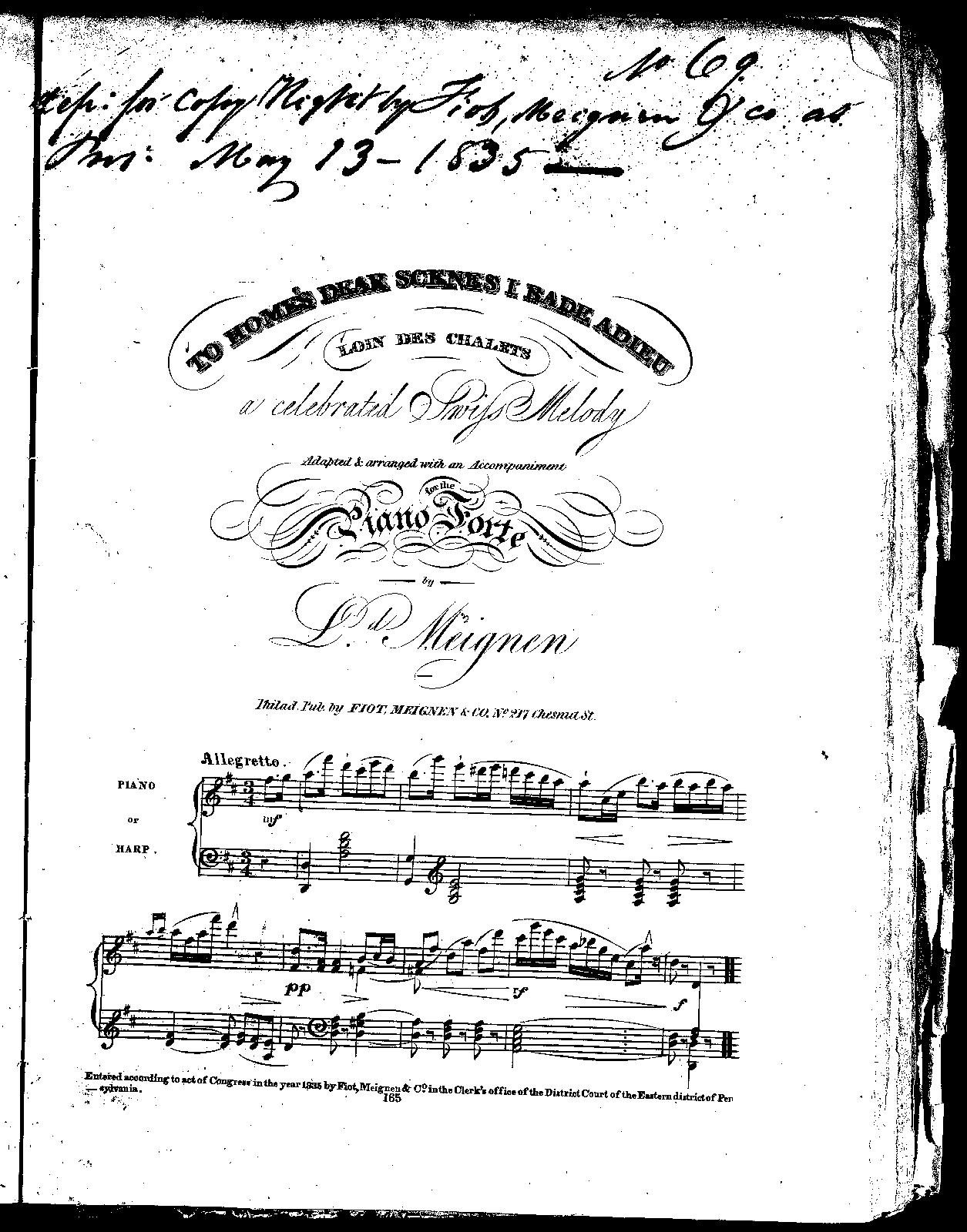 | Alternative. Title | A celebrated Swiss melody; To Home's Dear Scenes I Bade Adieu |