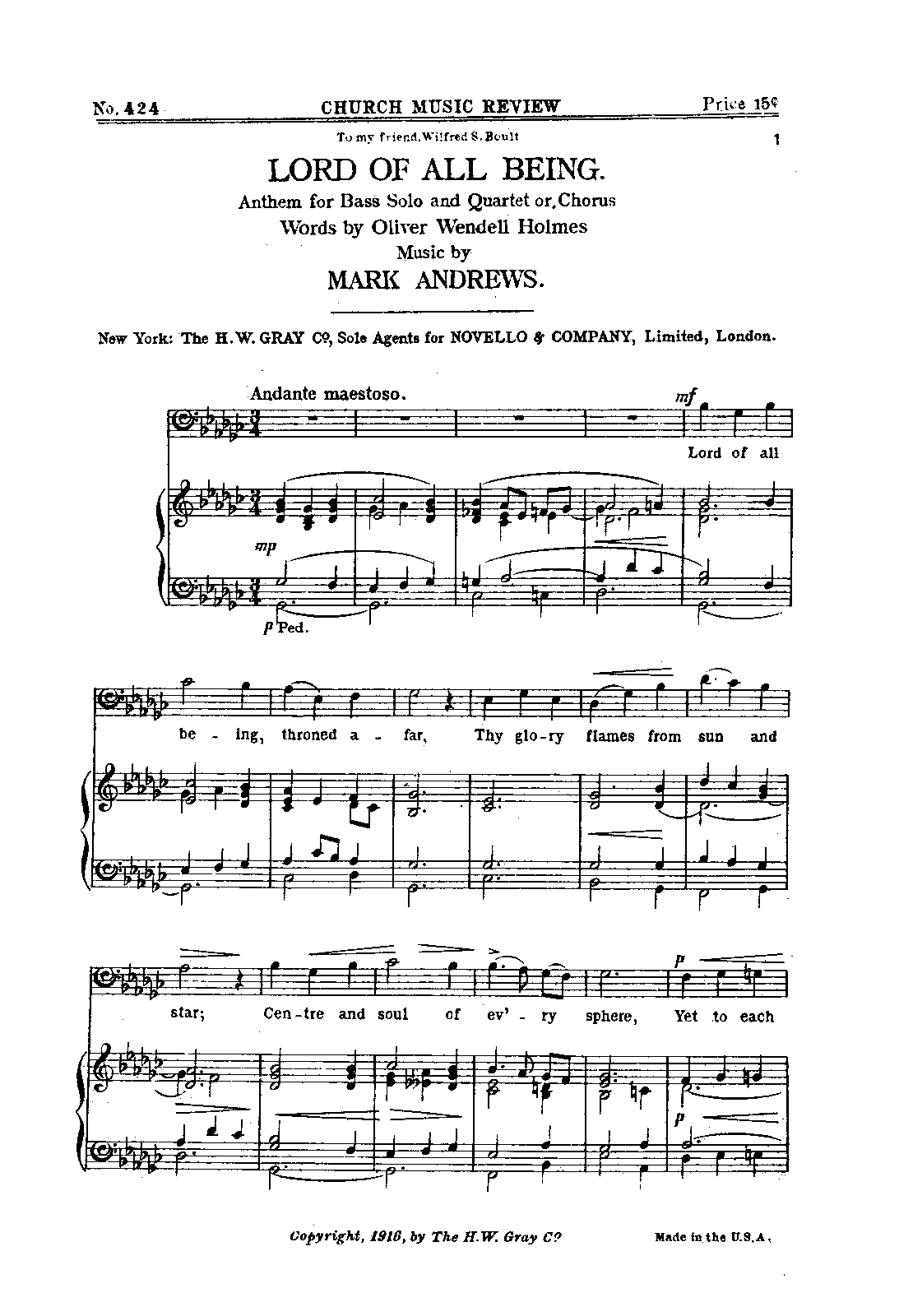 | Genre Categories | Anthems; Religious works; For voice, mixed chorus, organ; |