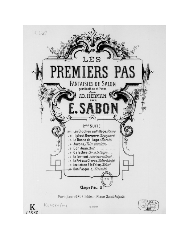 ⇒ 15 more: 2. Herman: Un Reve • 3. Rossini: La donna del lago (March) • 5. Mozart Don Juan (Air) • 6. Souvenir du Tyrol • 7. Herold: Le Pre aux Clercs (Ronde) • 8. Weber: Robin des Bois (Chant des chasseurs) • 9. Les Alpes • 11. Donizetti: Serenade from Don Pasquale • 13. Donizetti: Elisir d'Amore (Rondo) • 14. Masse: Les noces de Jeannette • 15. Il pleut (Pastorale) • 16. Herman: Les Cloches du village (Priere) • 17. Masse: Galathée (Air de la coupe) • 19. Gondolina (Chant Napoliatine) • 20. Weber: Invitation à la valse