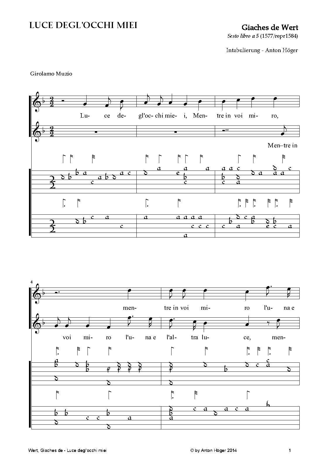 | First Publication | 1577 in Madrigali a 5 voci, Libro 6 |
