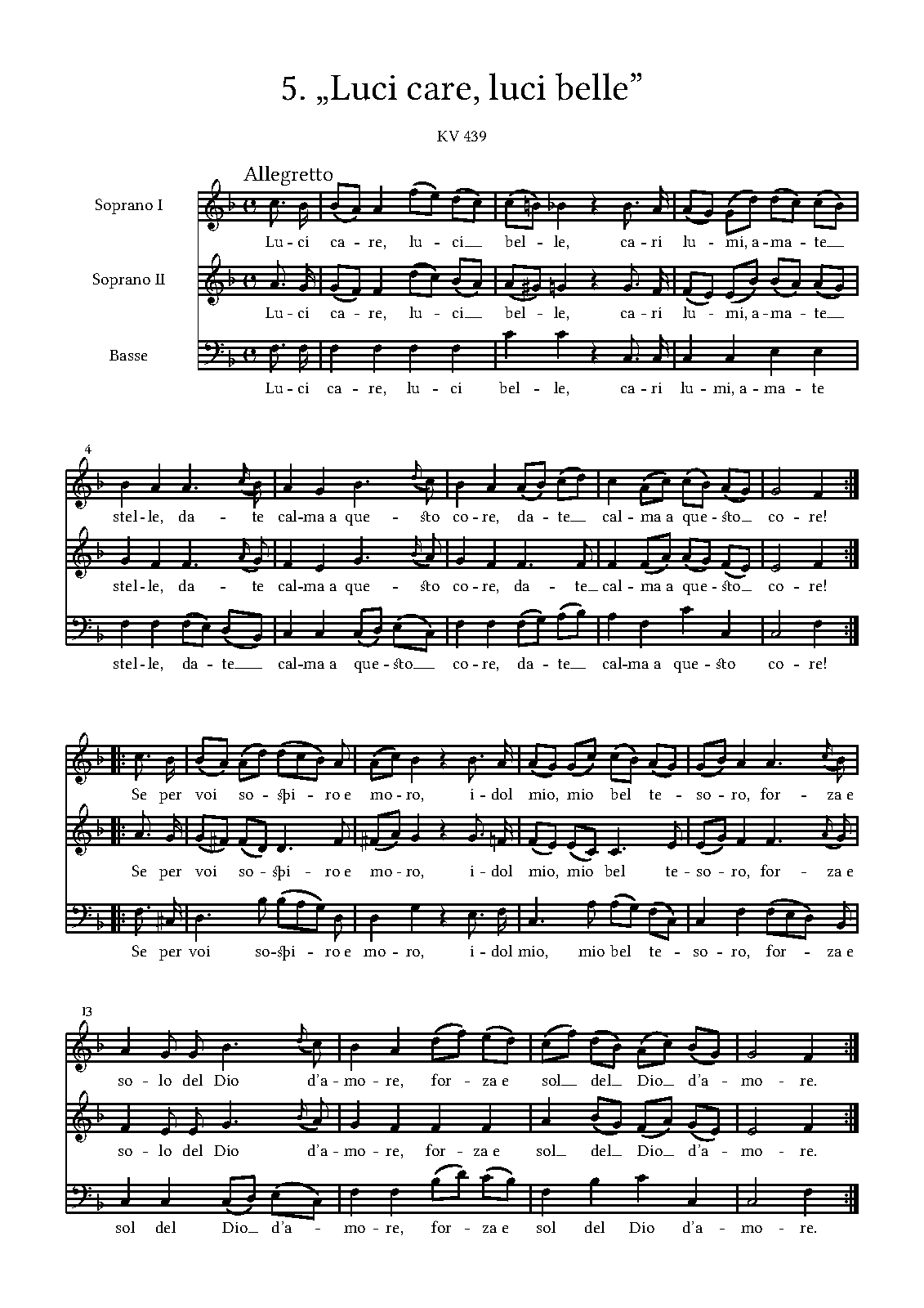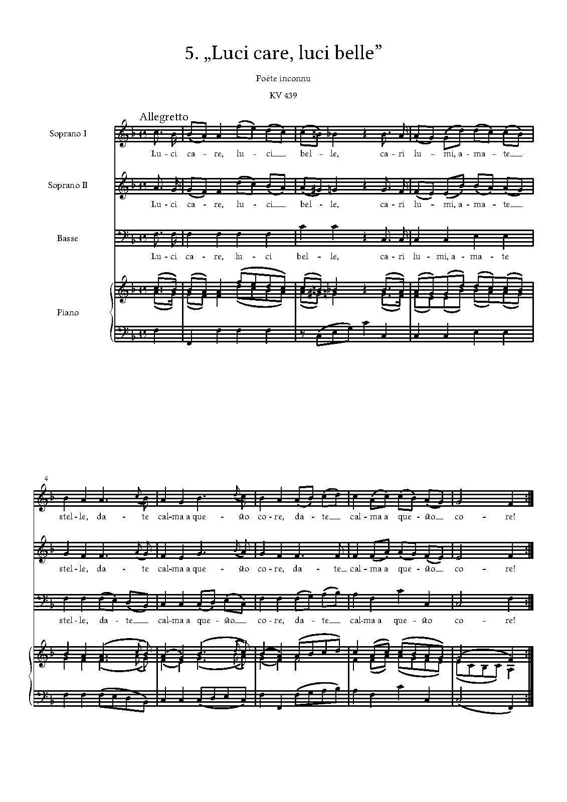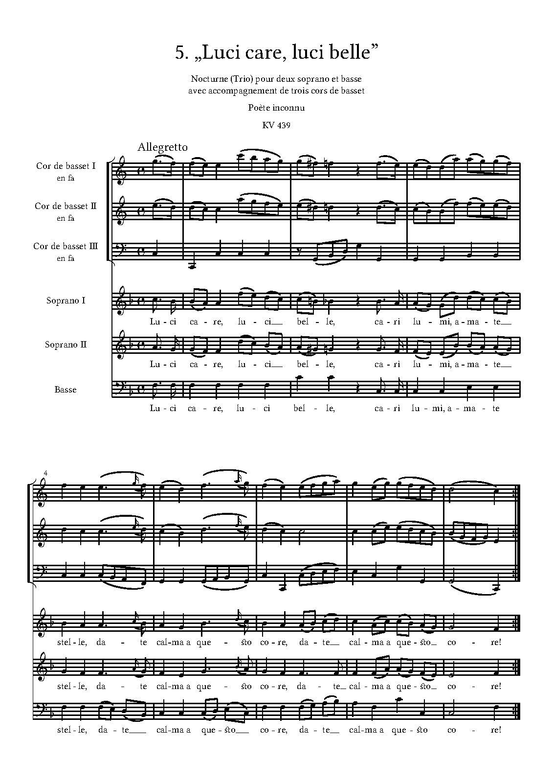| Instrumentation | 2 sopranos, bass, 3 basset horns (F) |