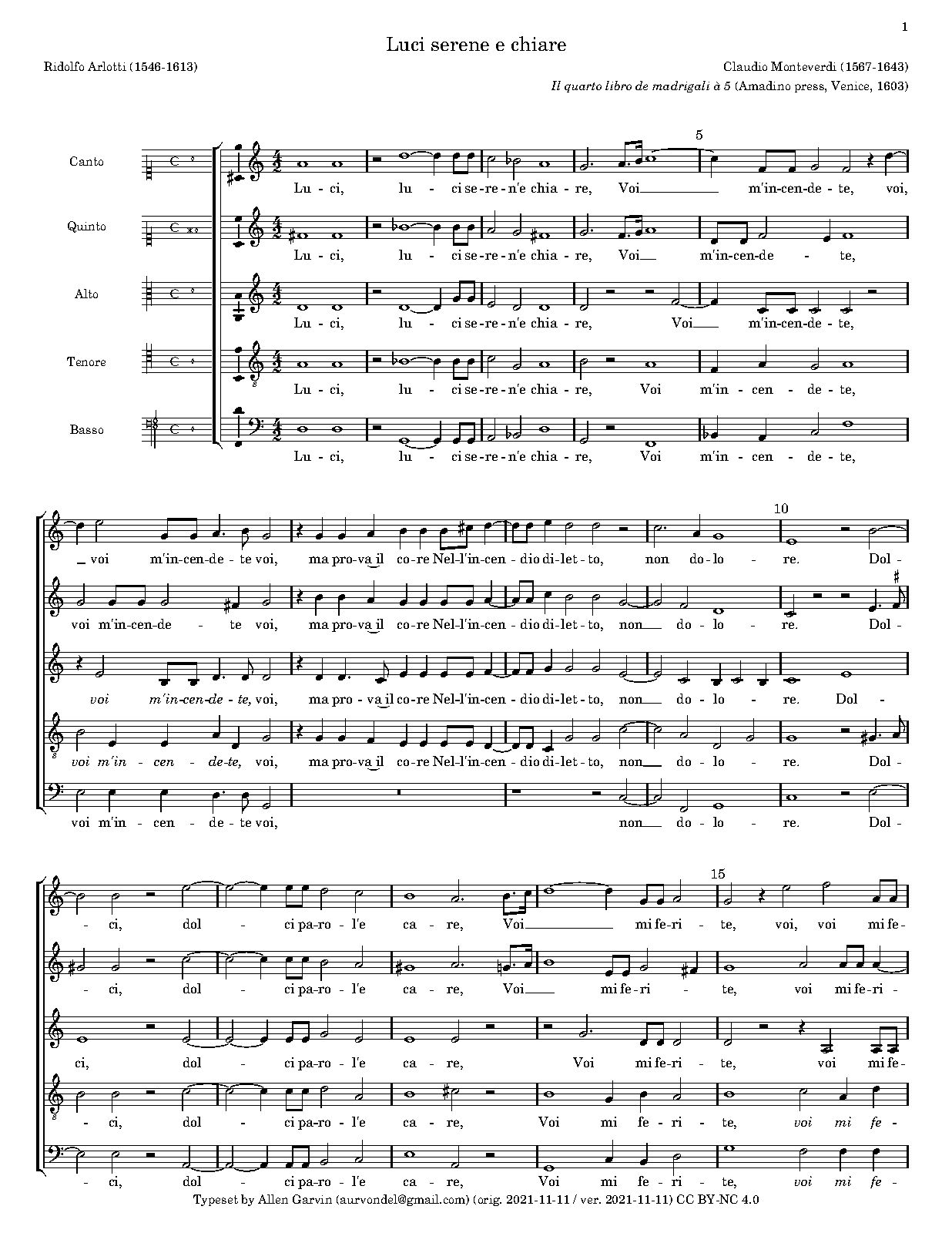 | First Publication | 1603 in Il quarto libro de madrigali a 5 voci (Venice: Amadino) |