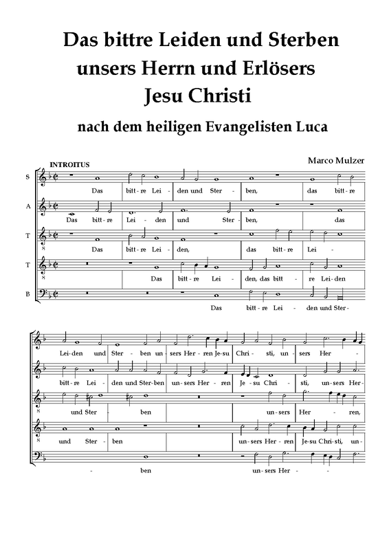Das bittre Leiden und Sterben unsern Herrn und Erlösers Jesu Christi nach dem Evangelisten Luca