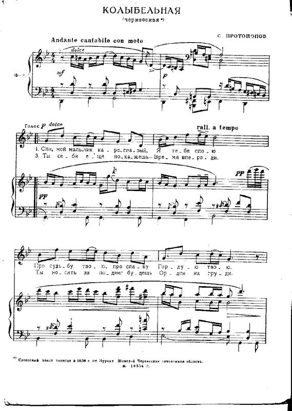 | Alternative. Title | Lullaby (Circassian); «Колыбельная» (Черкесская) |