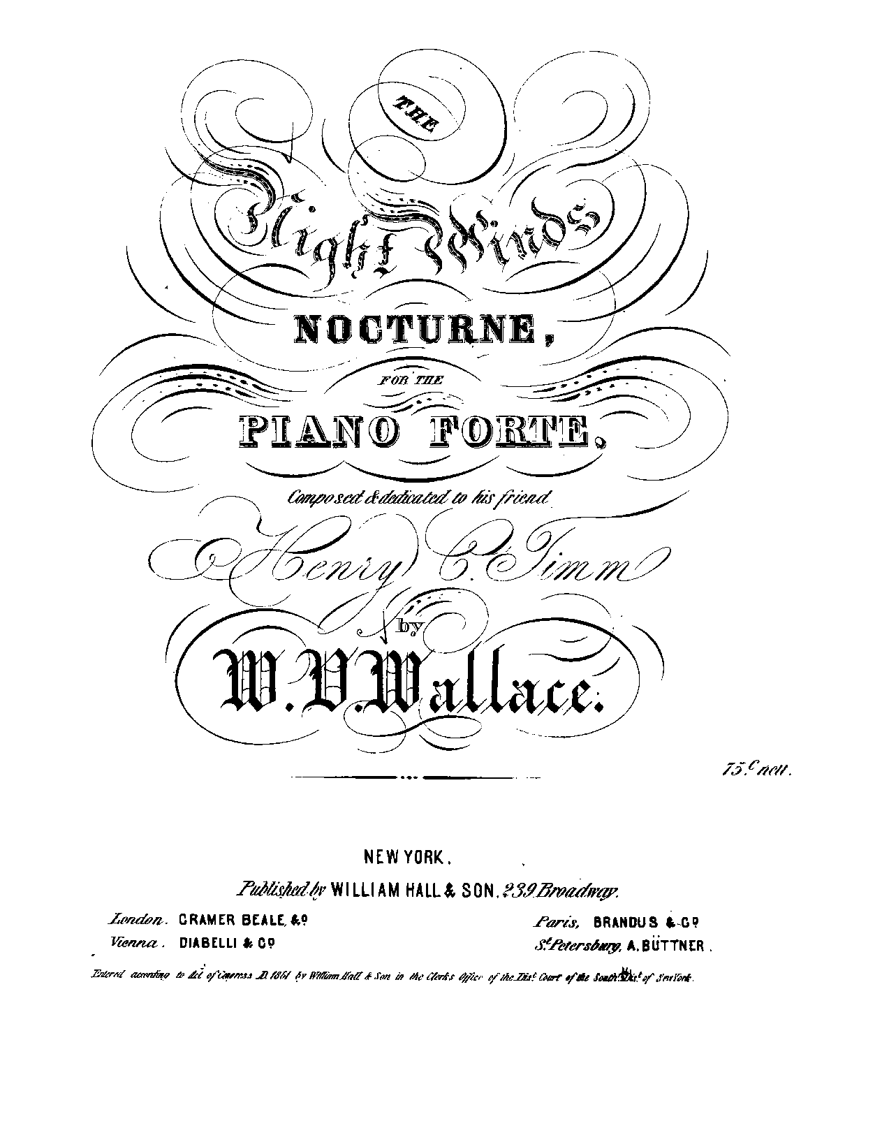 As a piano nocturne; composed probably after 1848 (when the first - two-act - version of the opera was finished) . "Composed & dedicated to his friend Henry C. Timm" (1811–1892)