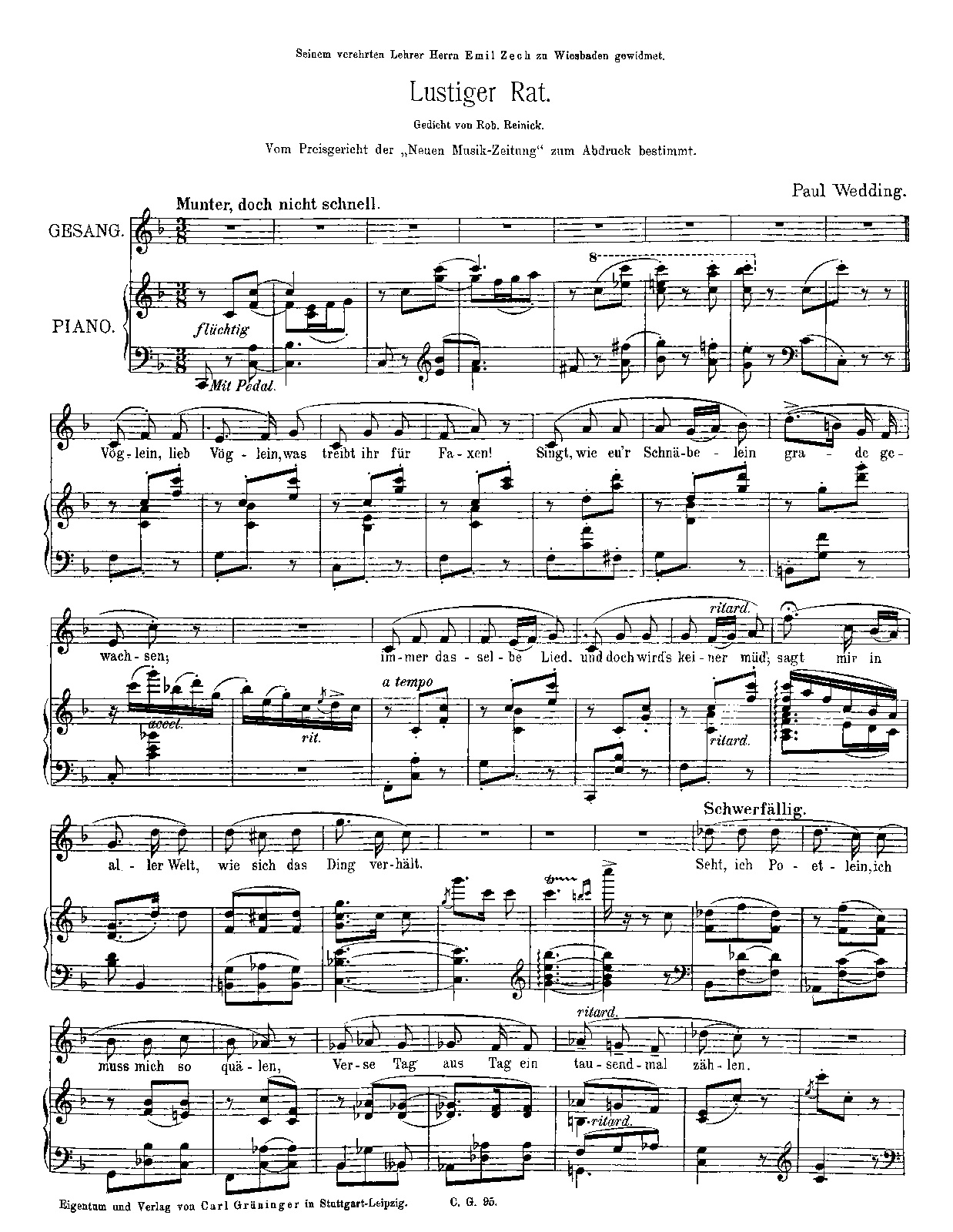 | Dedication | Seinem verehrten Lehrer Herrn Emil Zech zu Wiesbaden |