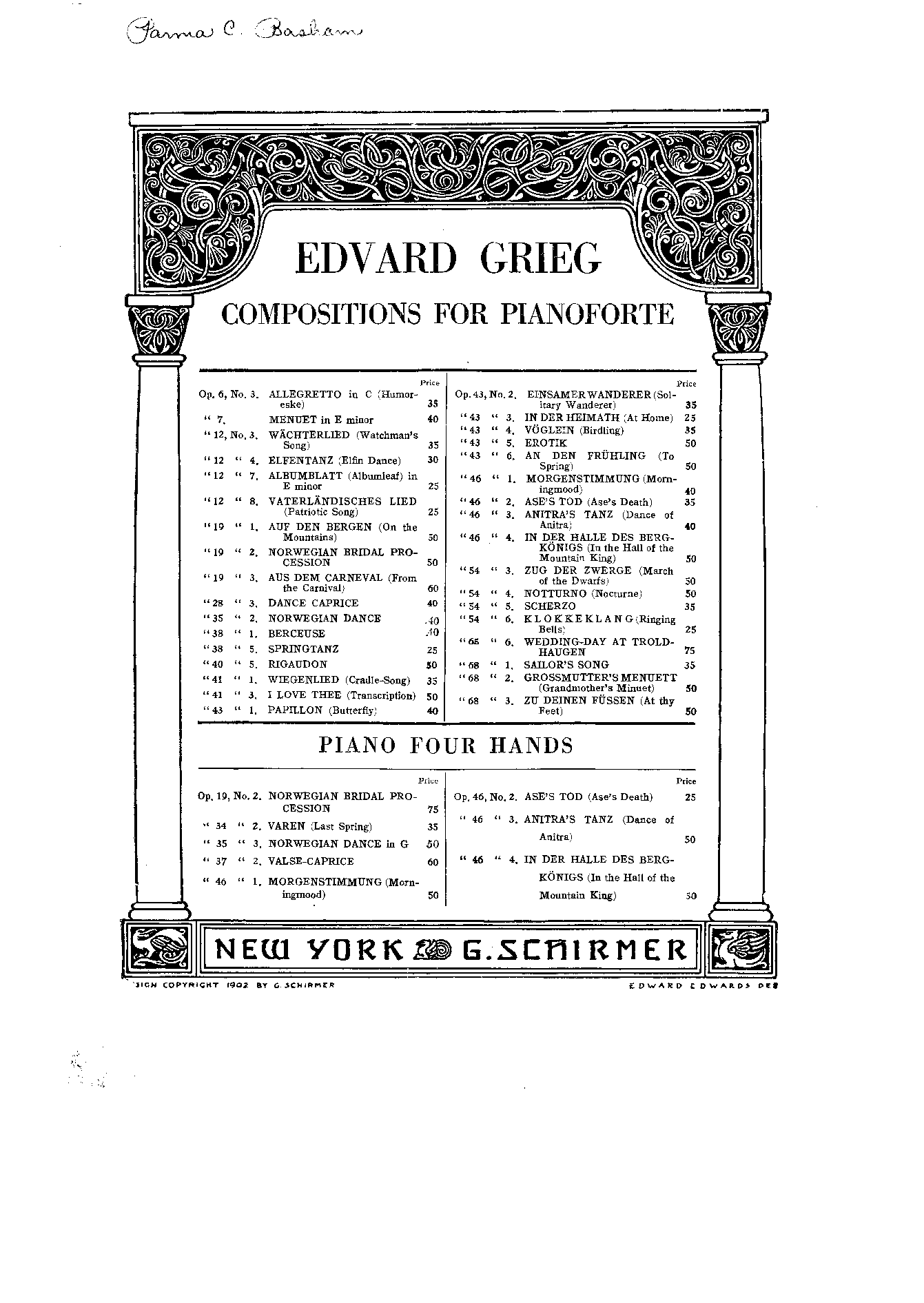 Publisher. Info. New York: G. Schirmer, 1901. Plate 16255.