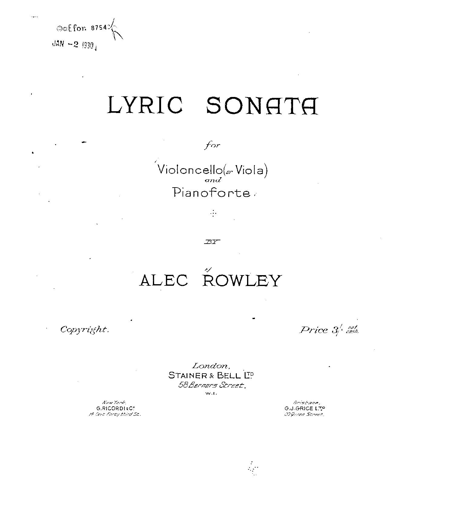 Publisher. Info. London: Stainer & Bell, 1929. Plate S. & B. 3934.