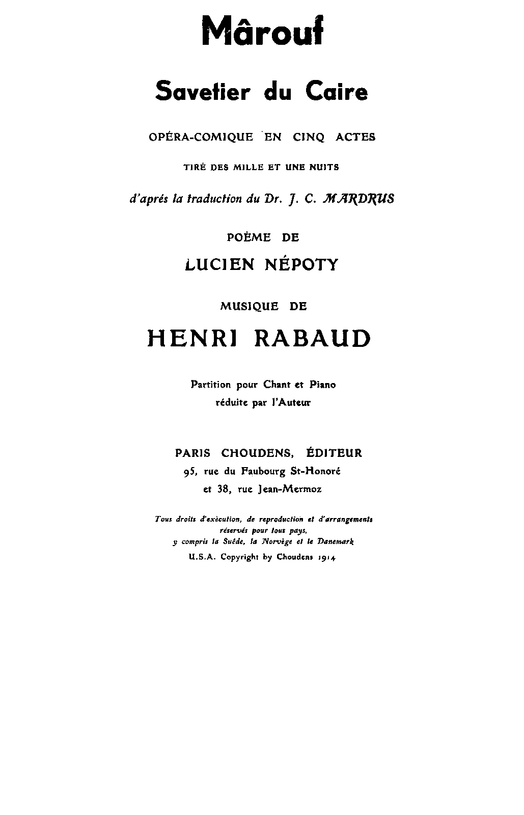 | Name Aliases | Marouf, savetier du Caire; Mârouf, zapatero de El Cairo; Mârouf, zapatero del Cairo; معروف إسكافى القاهرة; Mârouf |
