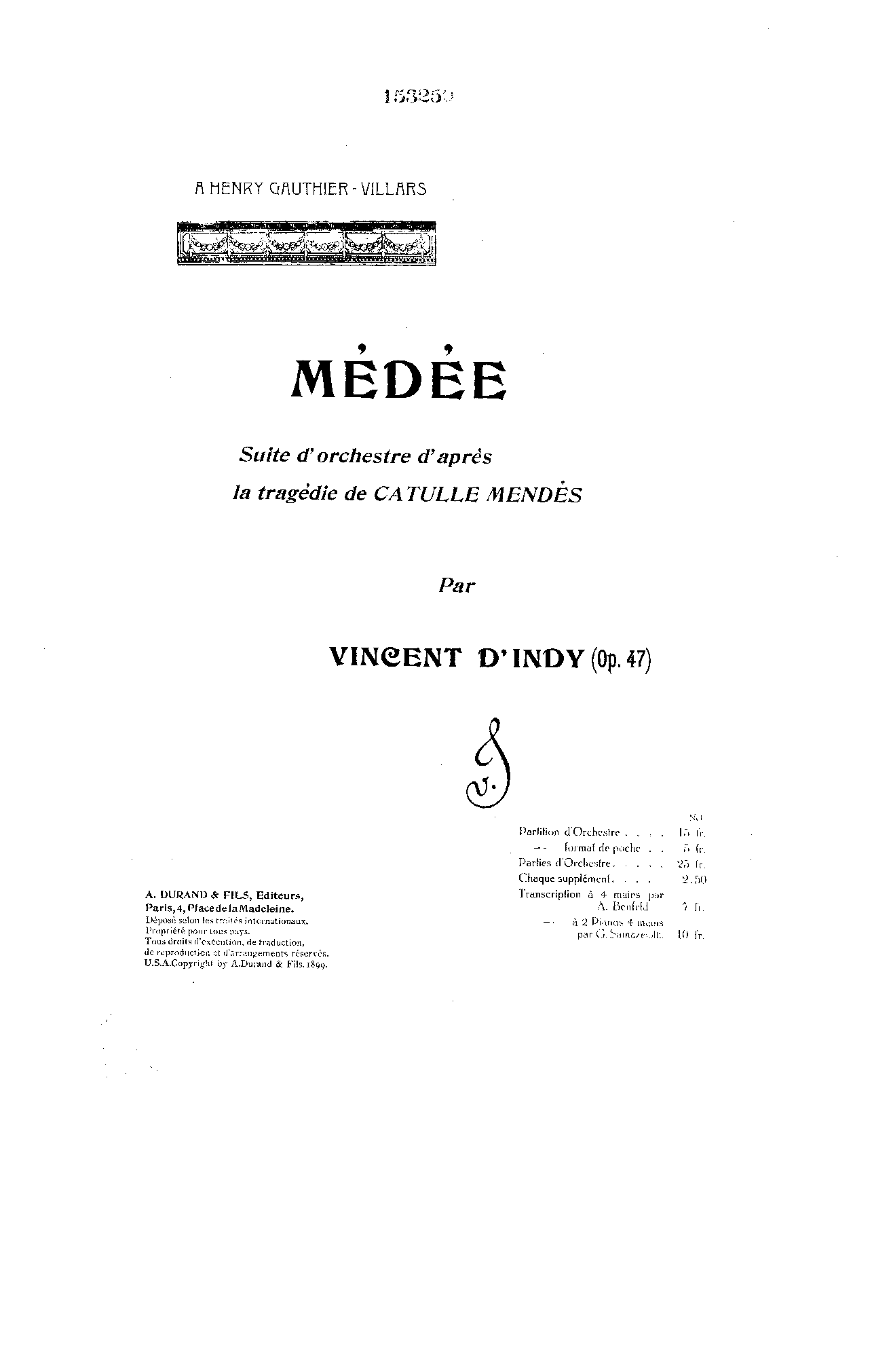 Paris: Durand, 1899. Plate D. & F. 5513.