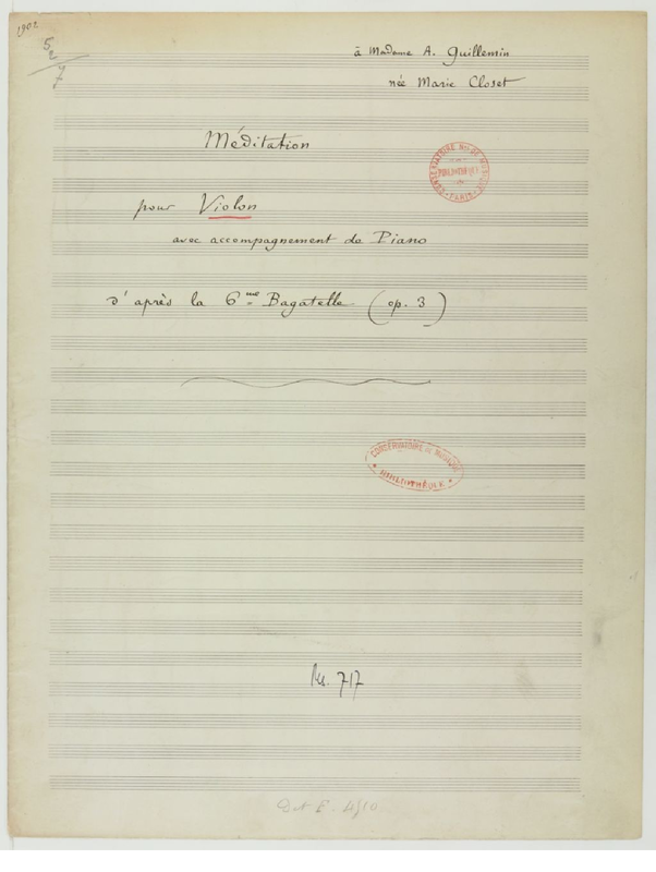 | Work Title | Méditation d'après la 6ème bagatelle |
