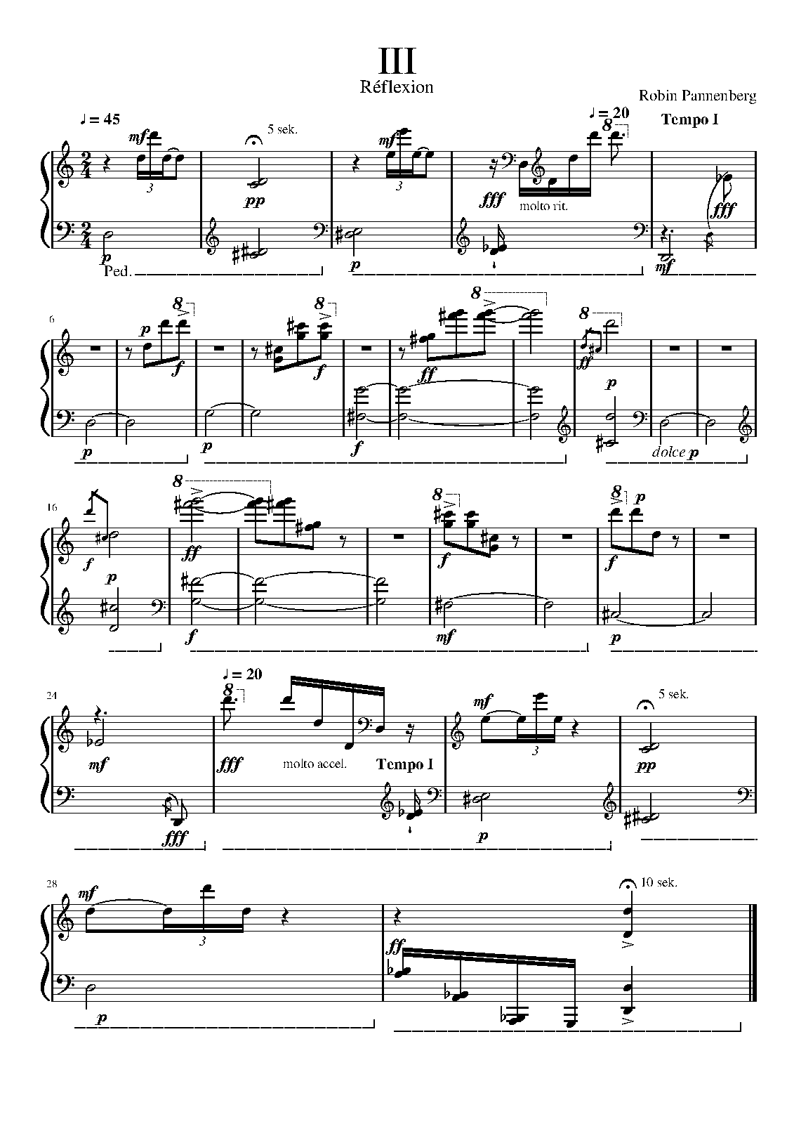 The Mèditations are 3 short pieces for the piano composed by Robin Pannenberg from May to August 2018.
