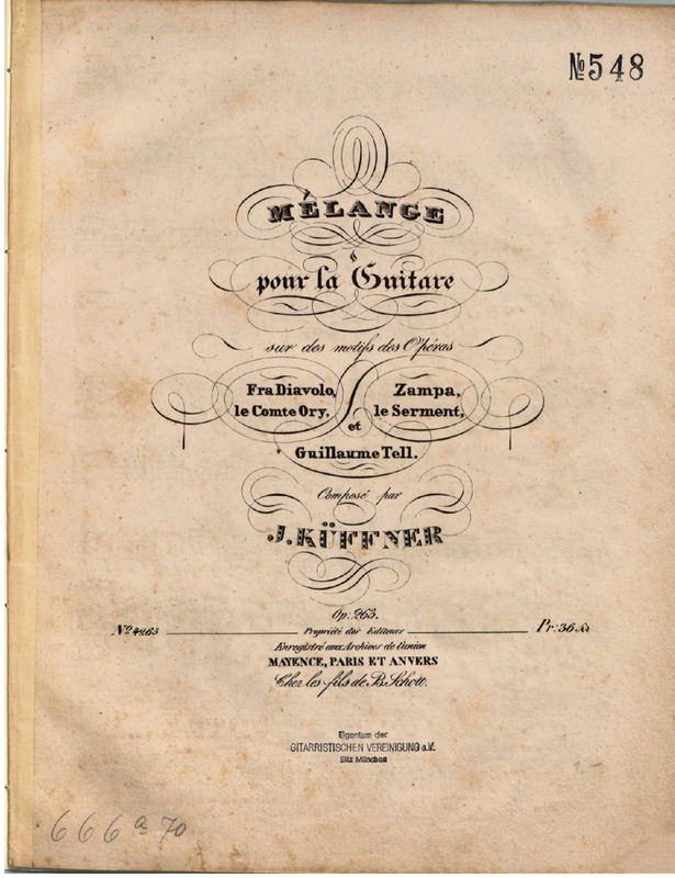 | Alternative. Title | Mélange pour la Guitar sur des motifs des opéras Fra Diavolo, Le Comte Ory, Zampa, le Serment et Guillaume Tell |