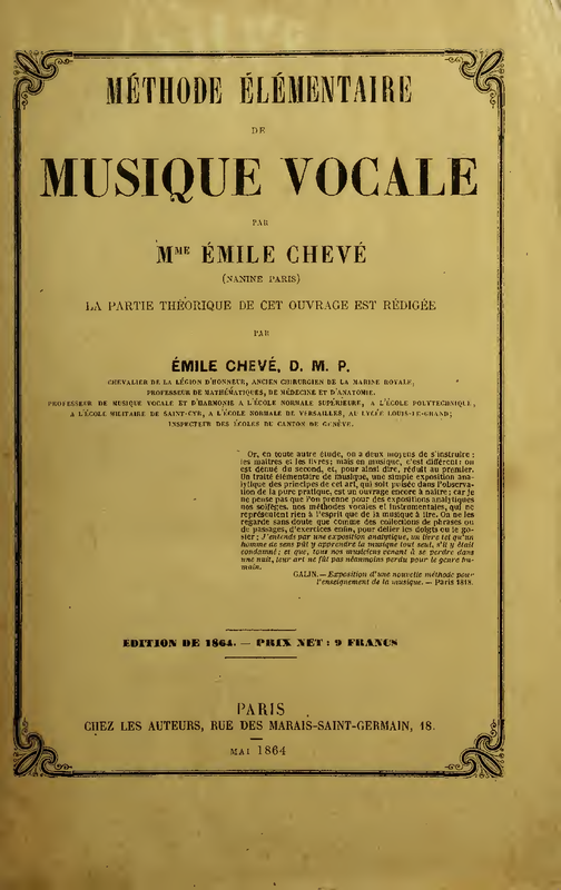 | Collaborative Work This work was co-authored by Nanine Chevé and her husband Émile Chevé. The first edition was solely the work of Nanine Chevé. |