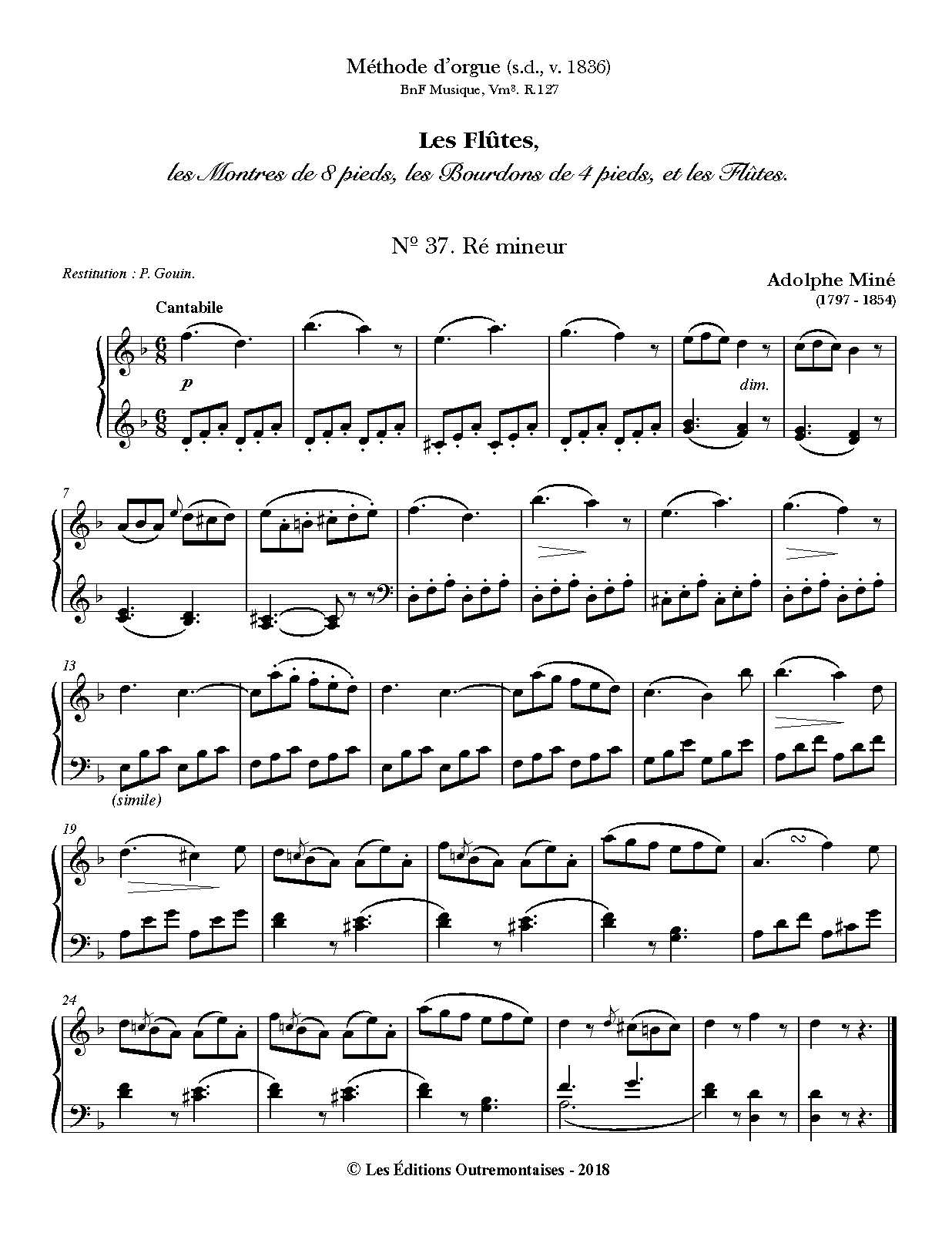 - Récit ; les Flûtes (voyez au mélange des Flûtes), au clavier de Récit, Hautbois, ou Trompette, ou Nazard, ou Hautbois du Positif. p. 163