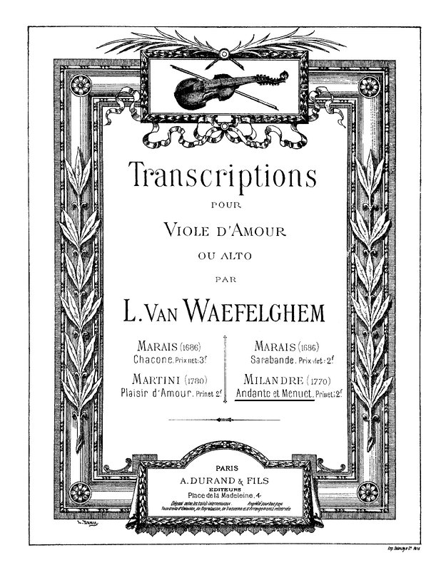| Alternative. Title | Méthode facile pour la viole d'amour, ou l'on traité des differentes Gammes, de la double corde, des Pincés, des Sons Harmoniques &c. Avec une Suite d'Airs comme arrangés pour cet Instrument seul, d'autres Airs avec accompagnent de Basse, et deux trio pour une Viole d'Amour, Violon et Basse. |