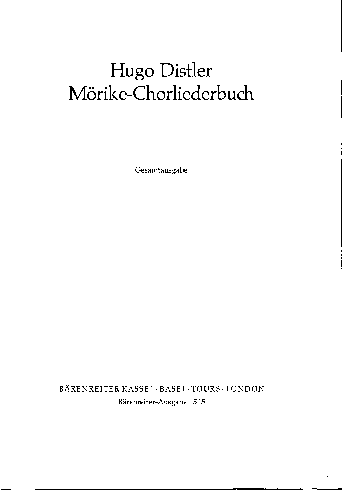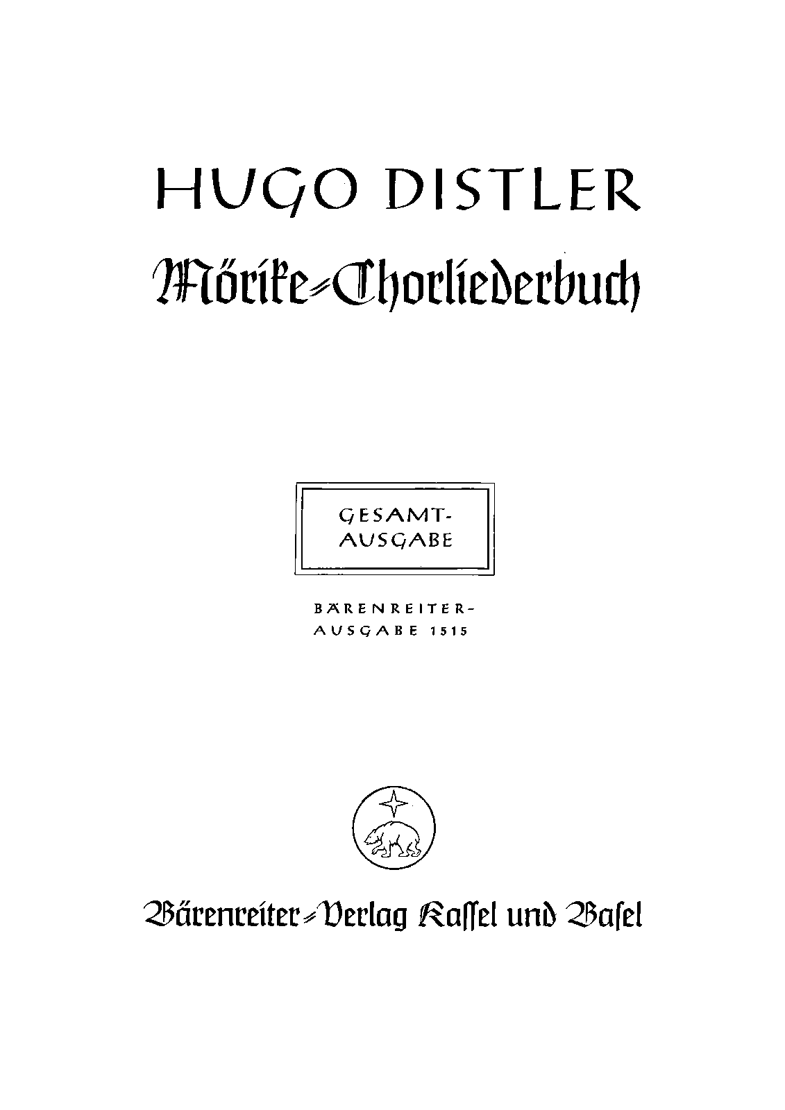 Kassel: Bärenreiter, 1939. Plate BA 1515.