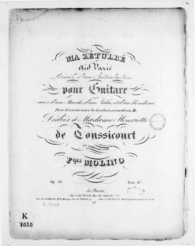 | Alternative. Title | Air varié précédé d'une Introduction pour Guitare suivi d'une Marche, d'une Valse et d'un Rondeau pour exécuter avec la Guitare, accordée en Mi |