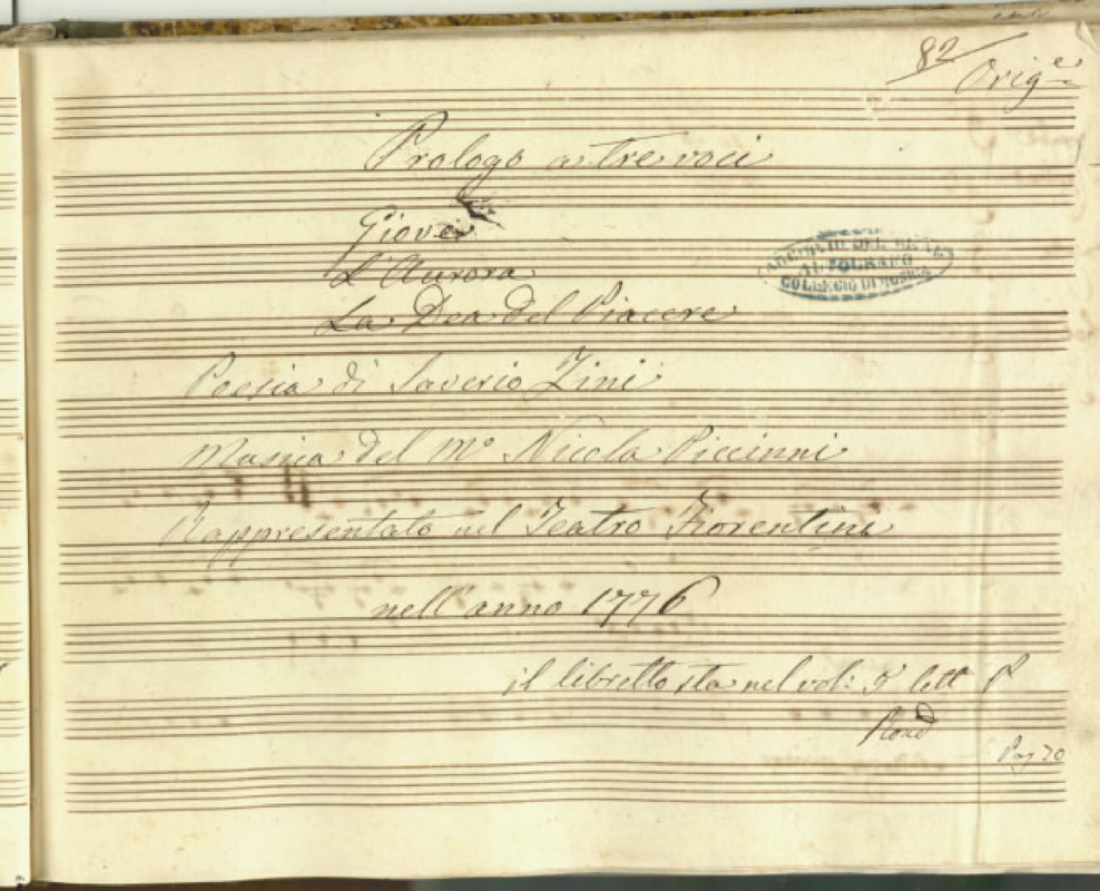 | Instrumentation | Voices: Aurora (S), Dea del piacere (S), Giove (T); chorus (SSB) Orchestra: 2 oboes, bassoon, 2 trumpets, 2 horns, strings, continuo |
