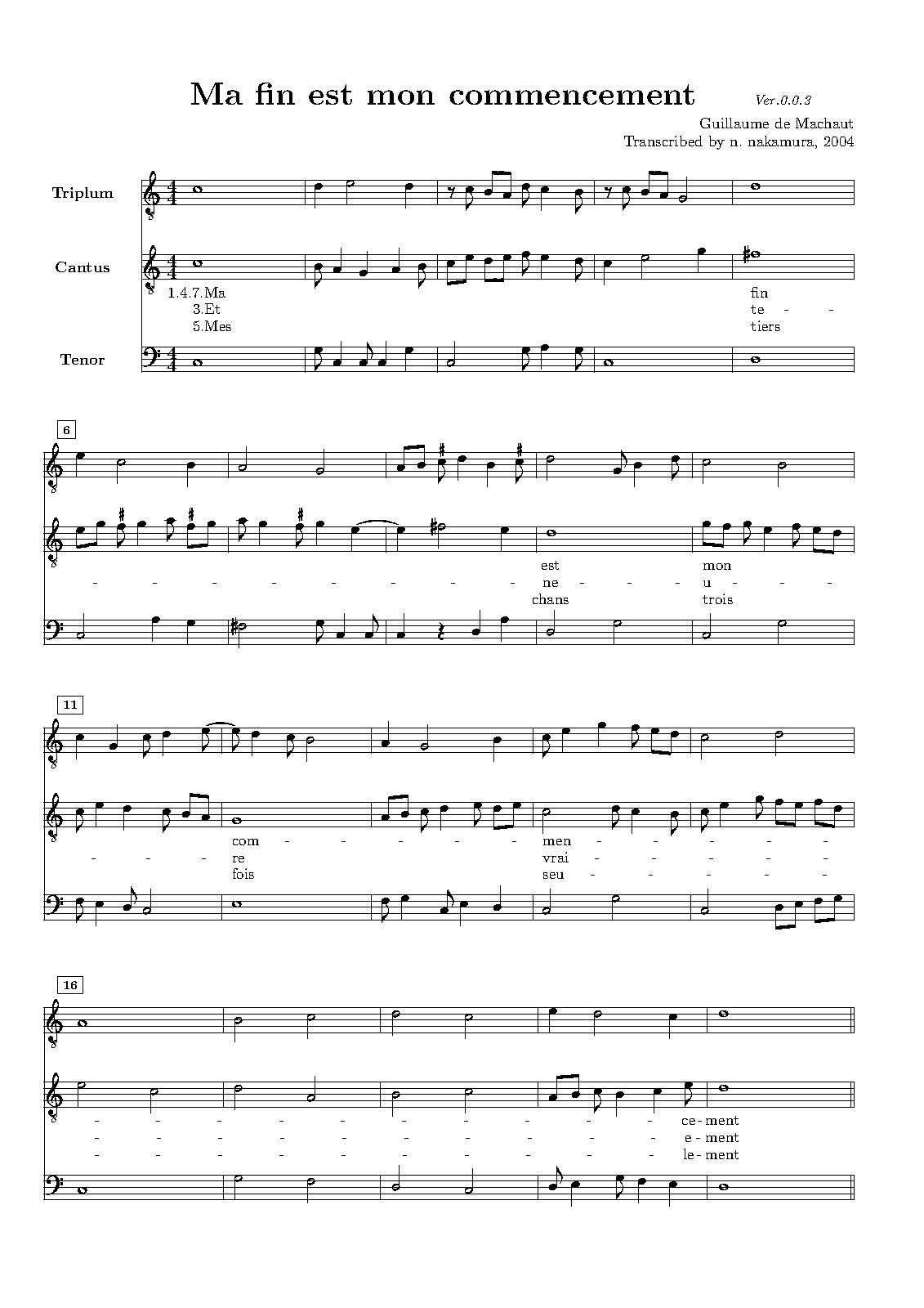 | Genre Categories | Rondeaux; For 3 voices; For unaccompanied voices; |