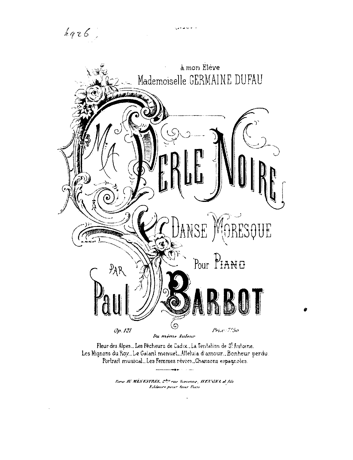 | Dedication | à mon élève Mademoiselle Germaine Dufau |