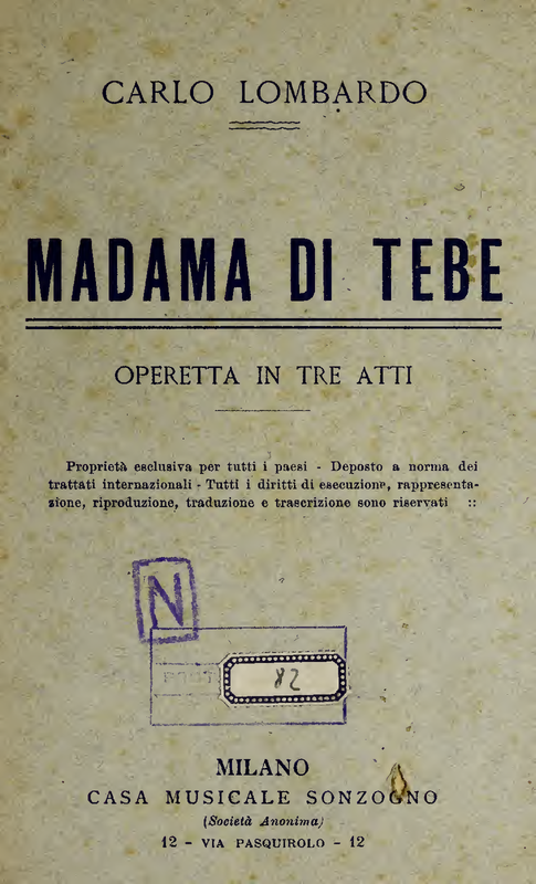 Publisher. Info. Milan: Casa Musicale Sonzogno, n.d.